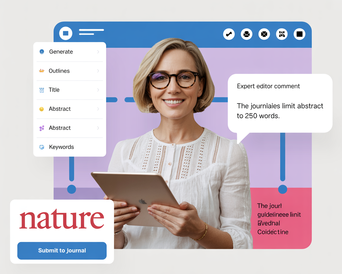 Structured IMRaD drafting with sources, figures, and target-journal formatting.