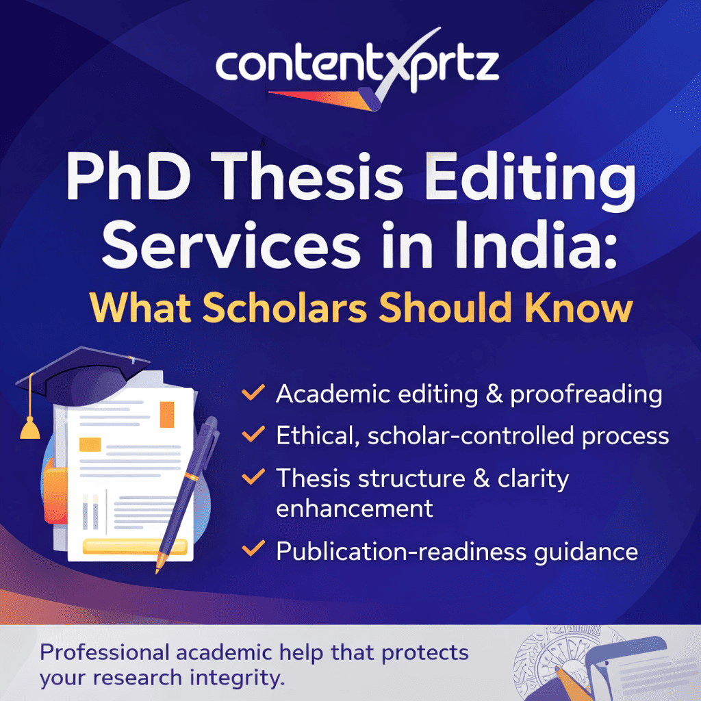 This article provides a comprehensive, evidence-based guide on PhD Thesis Editing Services in India: What Scholars Should Know, particularly for students, doctoral candidates, and early-career researchers seeking trustworthy academic support. Drawing on global publishing standards and best practices, it explains what professional thesis editing involves, why it matters, how to choose ethical providers, and how ContentXprtz supports scholars through publication-ready excellence.